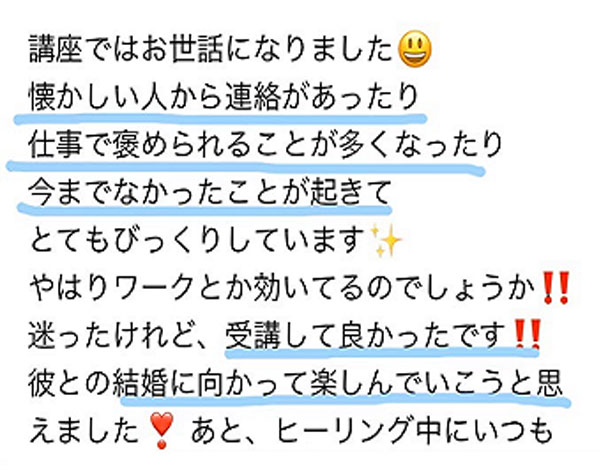 セッションや講座などで頂いた嬉しいご感想を一部ご紹介いたします